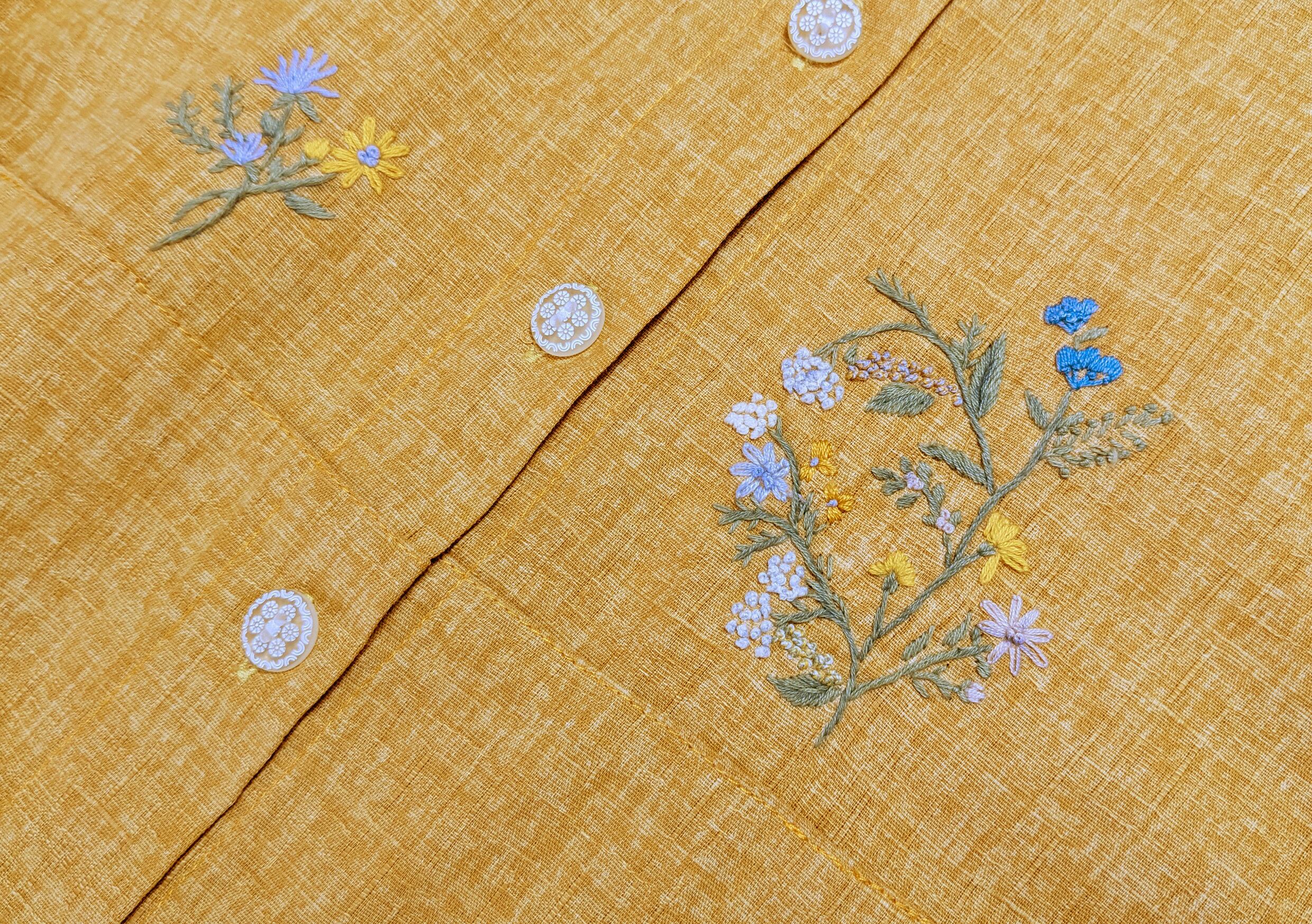かわいらしい草花を手刺繍で表裏に散りばめました。