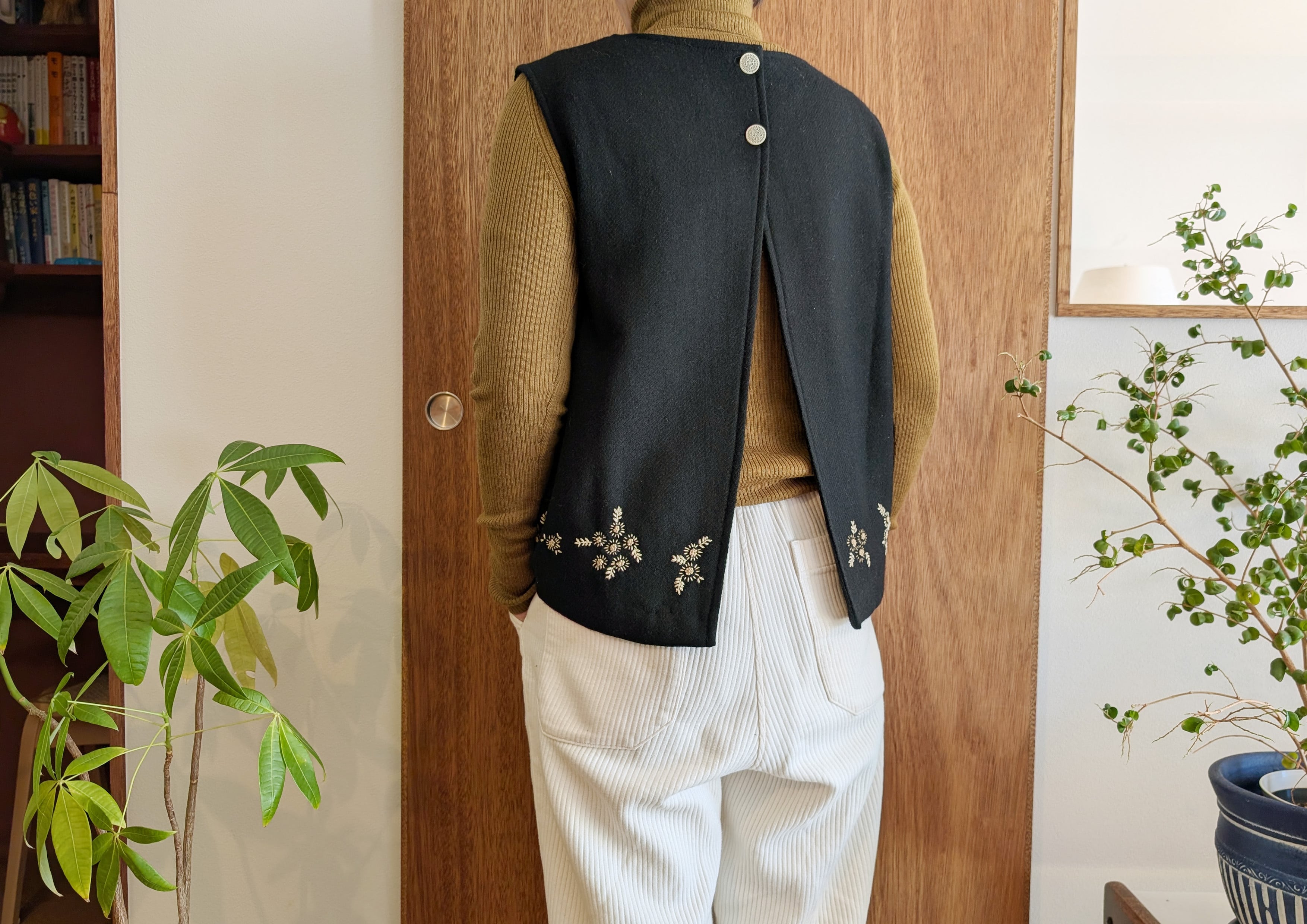 バックスタイルの2つボタンが可愛く、着脱もしやすいです。