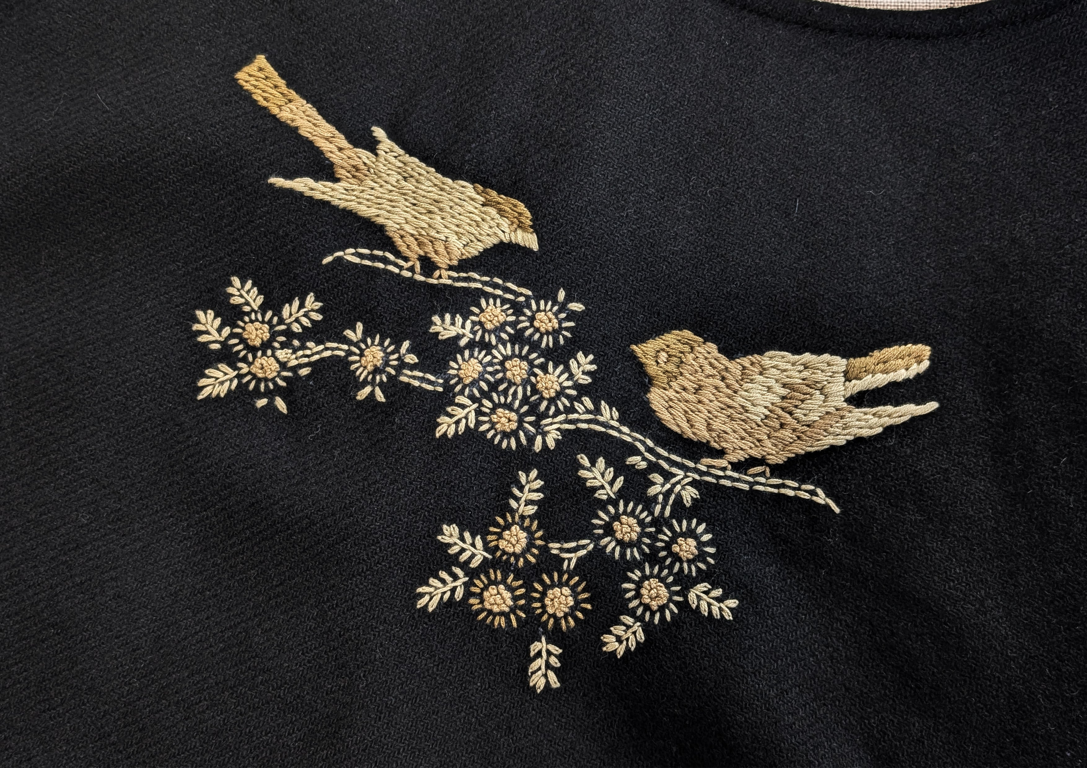 繊細な鳥の刺繍が印象的です。